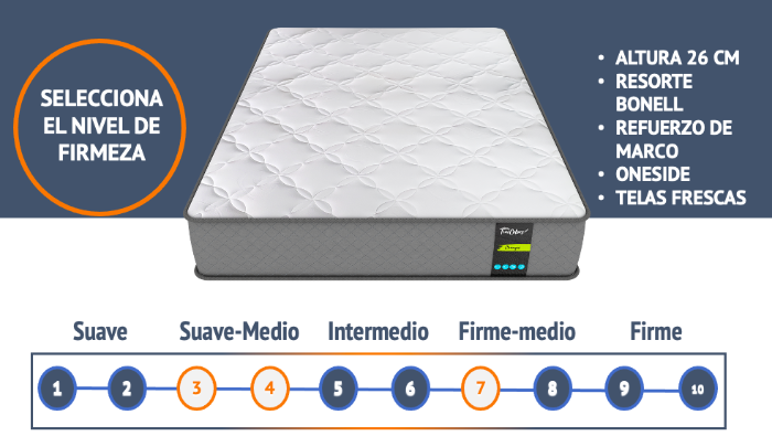 Con espumas de alta flexibilidad y resiliencia , que brindan un soporte adecuado conservando las propiedades de confort requeridas, acolchado superior con telas en tejido de punto con propiedades hipoalergénicas y antibacteriales, de naturaleza fresca y suave, para tener noches de descanso placenteras.